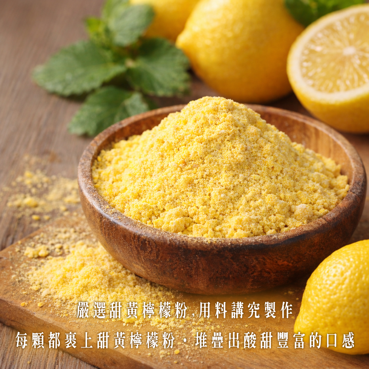 用獨家裹糖技術包裹黃檸檬粉達到口感豐富 酸中帶甜 檸檬香氣逼人
