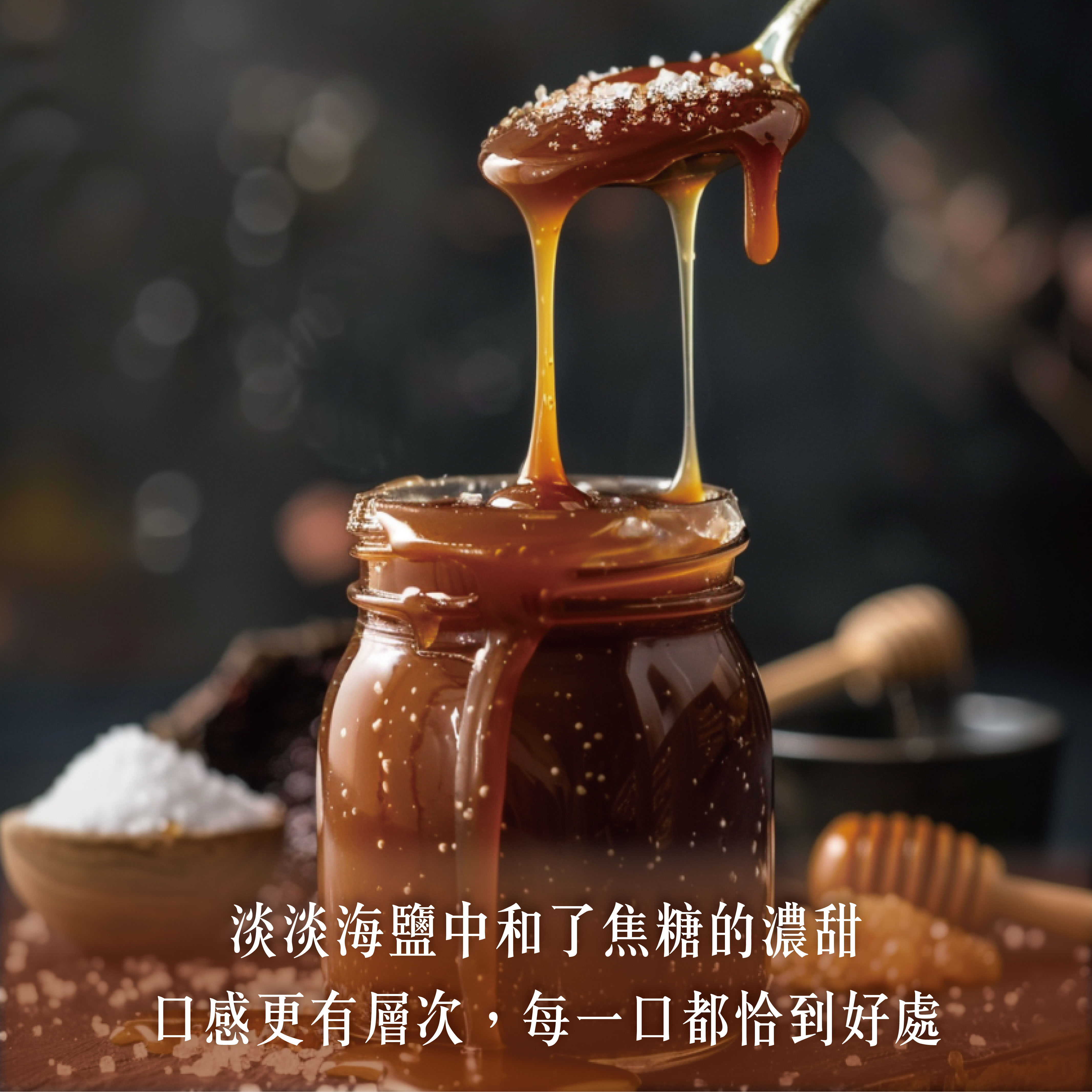 添加海鹽,濃郁焦糖香中帶有些微的鹹味,口感豐富不死甜