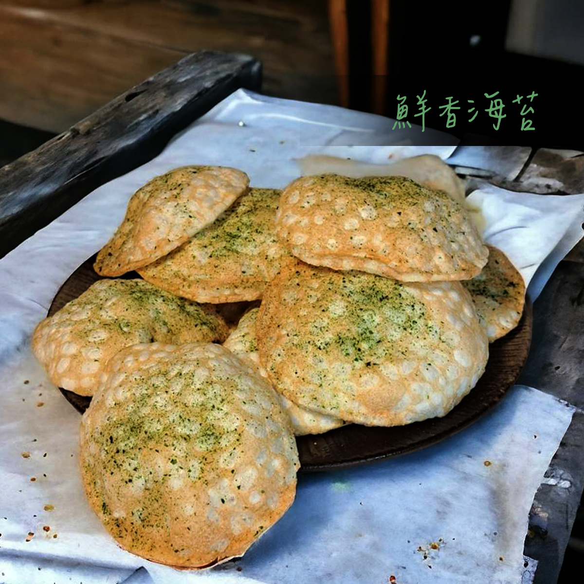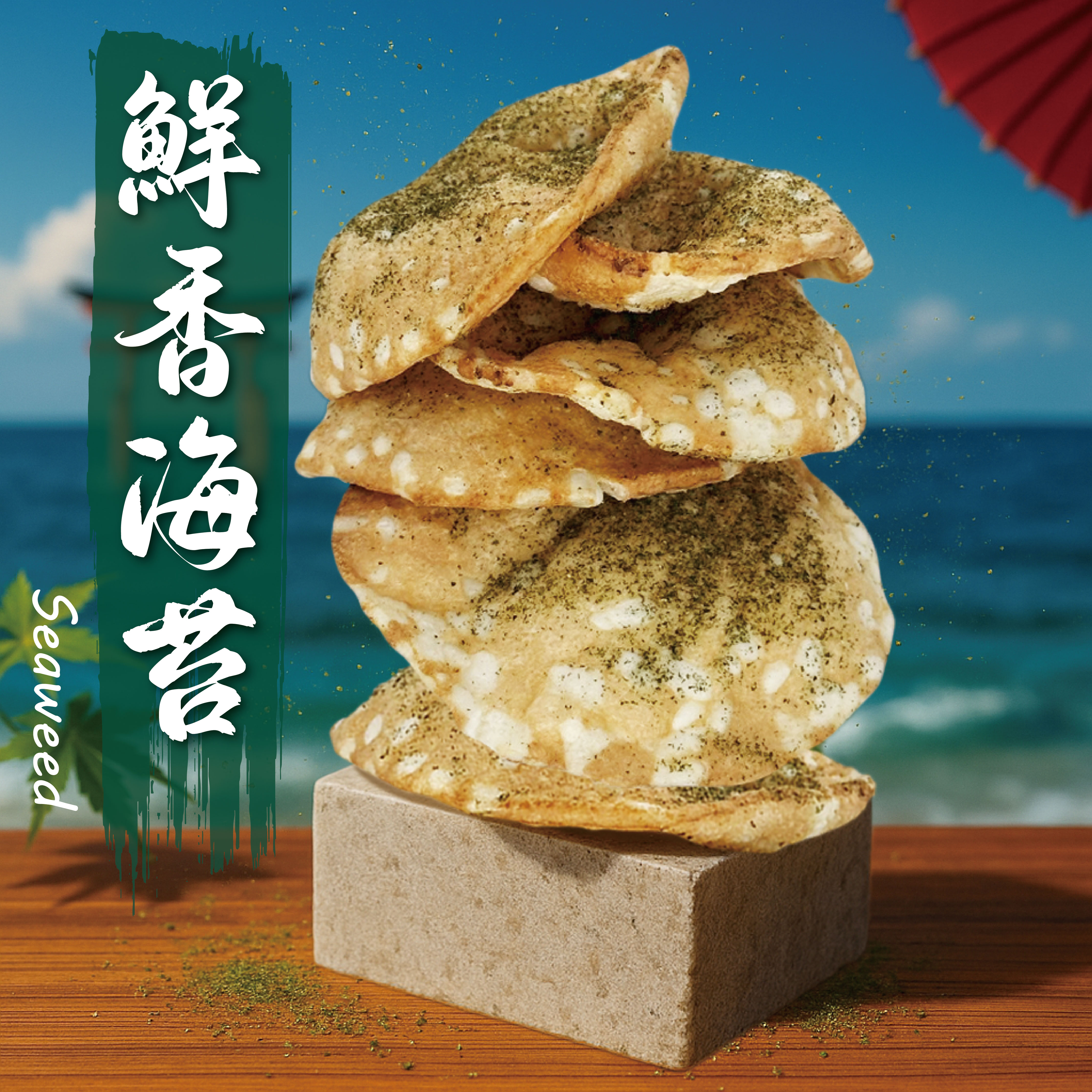 噴上少許的芥花油配上可口的海苔粉,經過高溫烤箱的二次催熟,打造出更加酥脆的口感