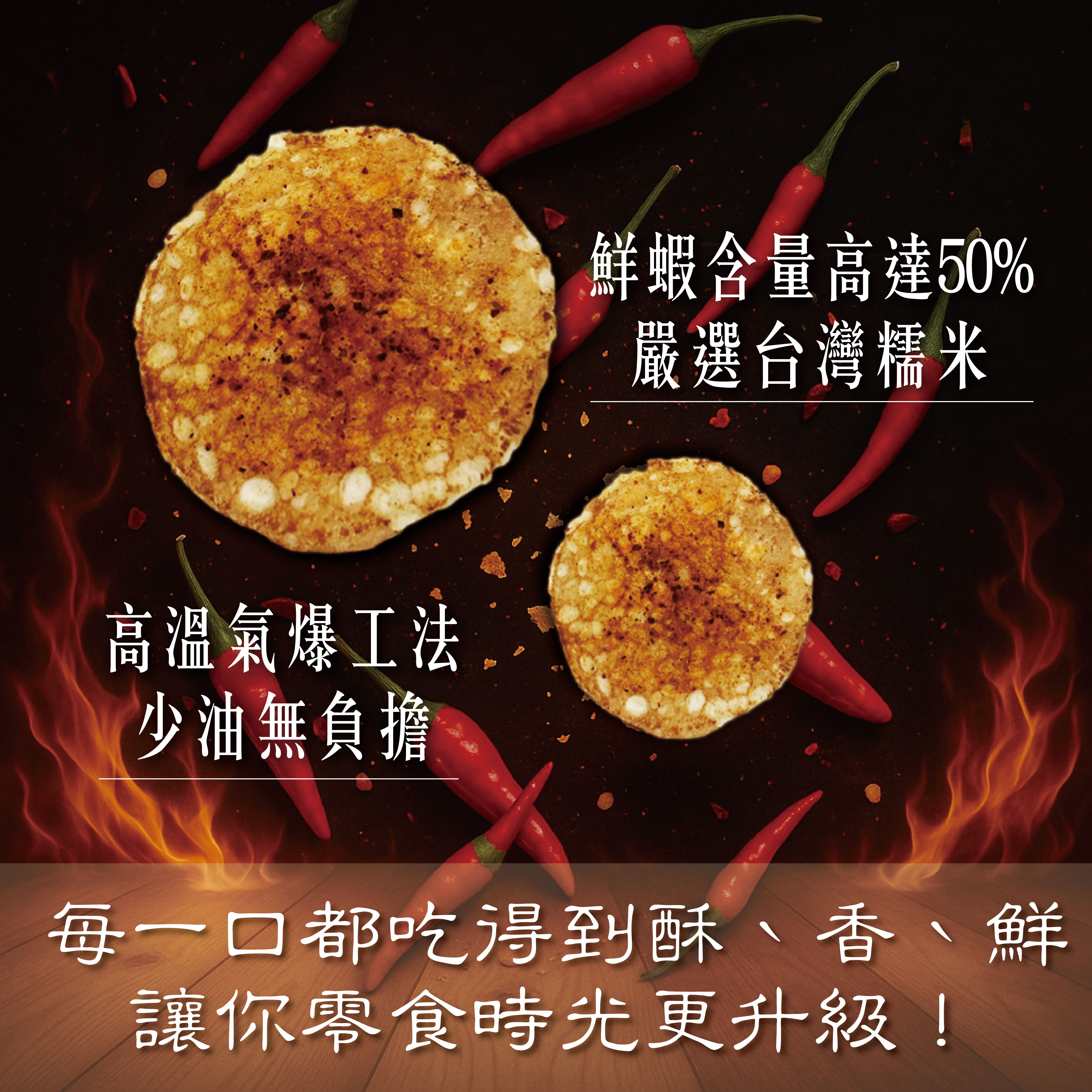 蝦餅佔有50%,搭配台灣的白米,做出來酥脆又好吃的口感