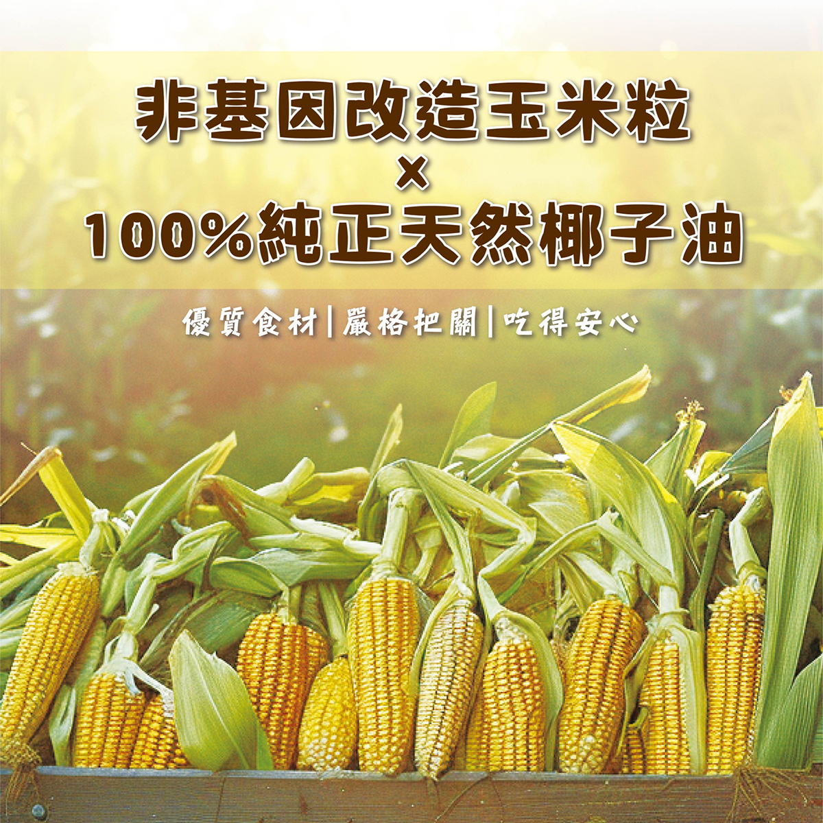 採用純正椰子油來製作爆米花,讓爆米花有椰子油特殊的香氣
